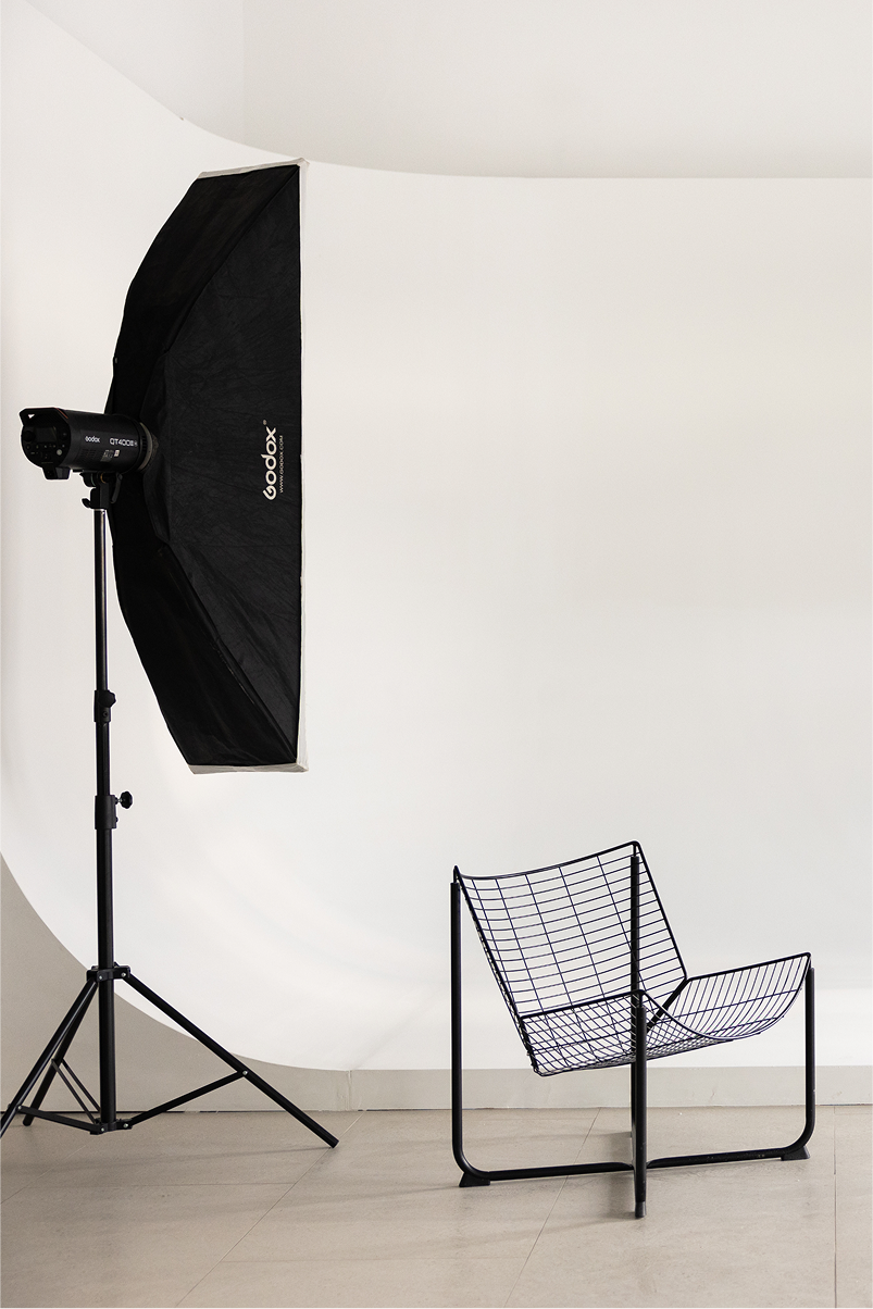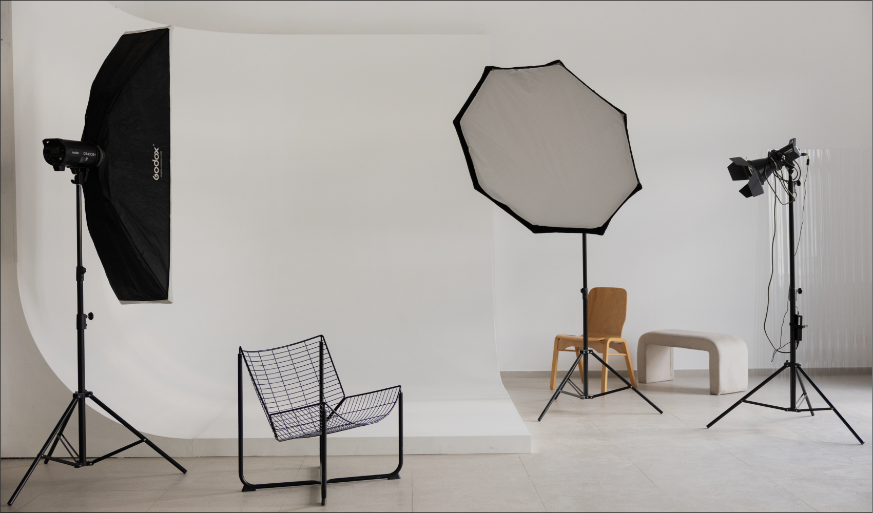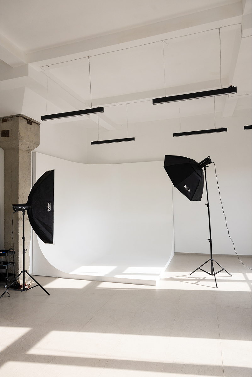 У залі є все для професійної зйомки: постійне світло та спалах, а також власна гримерка, доступна протягом усього часу оренди.